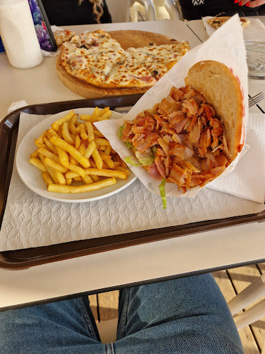 Fast little place to get some good fast food, we had the pizza with Kebob, we chose the large size but it’s way to big for 2 people lol. The durum is a friend chicken wrap and it will was full of veggies and the 3 sauces that came to the table were great, the white sauce is like a ranch the red one is like a spicy ketchup while the orange one is the spiciest with a mayo type taste. A large patio fresh shawarma and serves a great vegan option too. The staff speaks English as well as Portuguese. Perfect place...