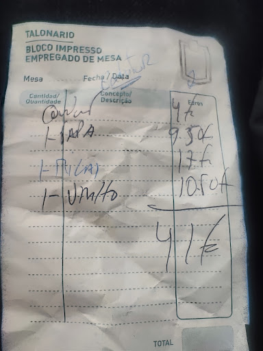 Read moreMi experiencia no ha sido positiva y mira que iba con ilusión pie los comentarios leídos. Para empezar no se ouede pagar con tarjetas, manejar dinero y en la situación en la que está o ahora es como retoreceder muchos años atrás, un restaurante que no tenga pago con tarjeta no es lógico en 2020. La atención del personal aunque podría mejorar, si uno no entiende la carta en portugués tampoco es pasa nada que te lo expliquen ya que son 7 platos y no que el camarero te haga ver que hace un esfuerzo en traducirlo verbalmente en varios idiomas dependiendo de la clientela y te meta prisa porque no lo entiendes a la primera. Por lo demás correcto. El tiempo de espera para los platos muy largo, pero debo decir que no no avían avisado al sentarnos. El bacalao que pusieron a la brasa quemado completamente, la foto está ahí para desmostrarlo. El otro plato estaba pasable, pero una unos filetes de cerdo muy normalitos con. Mucha ternilla, con un migas que si estaban buenas. La cuenta es otro tema, hasta tres veces hubo que pedirla para que nos pudiéramos ir lo antes posible. El precio no es caro para la cantidad de comida pero si la calidad no es buena, no compensa. En definitiva, no recomiendo este...