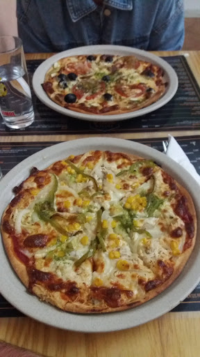 Bij binnenkomst zaten een moeder en kind aan tafel te eten. Enigzins verbaasd keek ze naar ons op, "dinner?" Vroeg ze. "For two" was onze reactie. Dat bleek helemaal geen probleem te zijn. We werden door de vriendelijk lachende vrouw naar onze tafel geleid, we waren de enige gasten. We kregen de keuze uit 3 maten pizza, klein, medium (naar Nederlandse begrippen een gewone pizza maat) en large (best wel heel groot voor een pizza). Ik koos voor medium en garlic bread vooraf. De prijzen waren schrikbarend laag, dus we besloten uit te pakken en ook een fles prikwater bij te bestellen. Allemaal geen enkel probleem. Mijn man koos voor de large pizza. Ondertussen werden we geïnteresseerd gade geslagen door de kok vanuit de keuken. Het lijkt er op dat ze niet gewoon waren gasten om dit tijdstip (19:00) te ontvangen, we waren desalniettemin ontzettend welkom. Mijn man kreeg zijn gigantische pizza natuurlijk niet op, de vriendelijke dame kwam meteen behulpzaam met een doosje aanrennen waarin de restanten van de pizza meegenomen konden worden "for at home" lachte ze er bij. Het eten was prima, niet bijzonder goed maar naar verhouding met de prijs echt prima. De toiletten waren schoon en de mensen dus heel erg vriendelijk. Ik vermoed dat dit meer een plek is waar je na het eten gezellig een drankje gaat doen en waar je leuk kunt poolen. Er is overigens goede gelegenheid om...