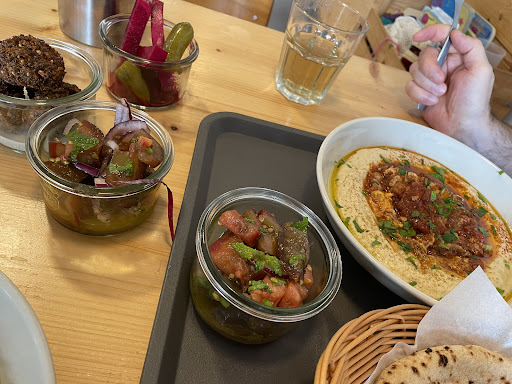 Read moreThis place serves amazing hummus that comes with different toppings. We had the mushroom and beef option with a boiled egg and additional falafel and everything was sooo delicious. The hummus comes with pita, pickled vegetables and a small salad. Service is super friendly and quick. Definitely a must-eat when you...