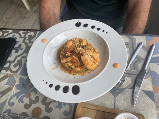 What an excellent restaurant! Fully against my own principles and custom during holidays I even went back a second time with my girlfriend. The first time we went for lunch around 14.30, rather late, but not a problem for the personnel who were all very friendly, and in a genuine way! The second time we were rather early for dinner (around 19.30), which turned out a wise choice because later that evening it became very crowded. Both in the afternoon and evening the food was well presented, with an original combination of different tastes and styles. The menu offers an interesting combo of local and innovative food. The atmosphere is laid-back, though all staff is working hard whilst still being attentive. If you are ever in the surrounding area, please do visit...