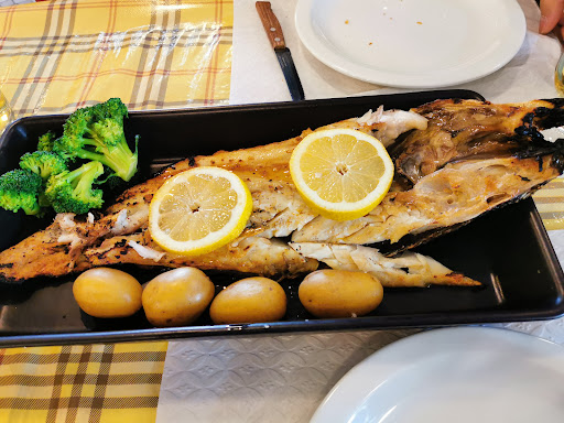 Read moreFuimos porque nos dejamos guiar por las puntuaciones y daba impresión de ser el típico sitio del lugar con comida fresca y bien de precio. Nada que ver! No se de dónde lo habéis sacado el resto... El sitio no es sencillo, es más bien tirando a cutrecillo pero bueno eso me importa menos. La Sra que nos atendió casi ni nos miro a la cara, ni sonrió, así que el trato excelente... Más bien es trato, sin más. La carta es muy limitada y sin precios. Al empezar nos trajeron unas aceitunas y pan con mantequilla que agradecimos pero si llego a saber que me van a cobrar 4€ por ello ni lo toco! El pan ni siquiera era bueno! Sorpresa al ver la cuenta. Pedimos unos calamares a la plancha, bien, sin más pero nos los podíamos haber ahorrado la verdad. Yo pedí salmón que estaba bien y mi marido carne, ok tb, todo con patatas y son dar más opciones. El vino verde bastante bastante justito, de la casa. Pues al traer la cuenta fueron casi 46€. No comimos postre y el vino de la casa eran 4€ así q lo d els comida abundante y barata no se de dónde lo habéis sacado pero no...