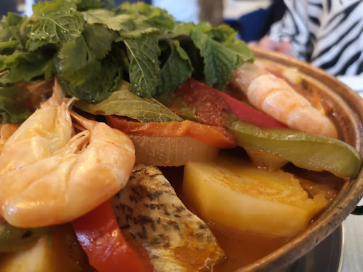 Escolhi garoupa depois de ver os robalos grandes na bancada, com olhos baços e a falta de brilho que me inspiraram pouca confiança. Quando a garoupa chegou à mesa, vinha com um cheiro intenso a peixe estragado. À medida que arrefecia, o odor agravou-se. Consegui comer apenas três pedaços. De forma discreta, informei a funcionária que levantou os pratos — recusando qualquer compensação ou substituição — apenas para que alertassem a cozinha, uma vez que tinham mais do mesmo peixe.