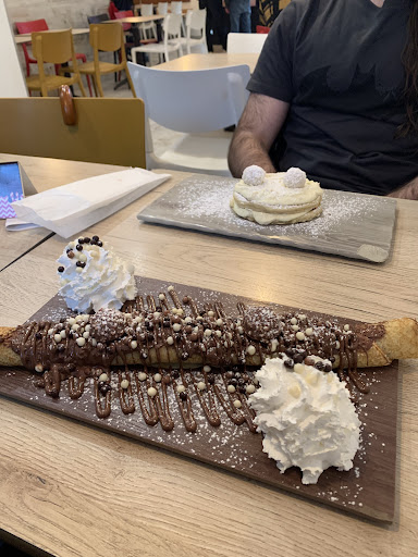 Read morePedi a especialidade da casa com grande expectativas. Como era inverno pensei acompanhar com um capuchinho mas não tinham bebidas quentes. Só bebida de lata tipo refrigerantes. Seria uma espetada de crepe, waffle e morangos. Esperei 56 minutos e quando finalmente me vêm servir o meu pedido, trazem tudo num prato raso. Os 3 condimentos mas sem ser em espetada. A apresentação não tinha nada a haver. Expectativa vs realidade deixou muito a desejar. Confrontei o senhor que me estava a servir pelo sucedido: “ não foi isto que pedi “ disse que já não tinha morangos inteiros então não seria possível montar a espetada. Mas se quisesse devolvia o dinheiro. Segui com o que me deram. Depois de estar quase 1h à espera eu queria era comer qualquer coisa e ir embora dali. E sinceramente a coisa deixou muito a desejar. Sem sabor, muito passado, e frio. O que valeu foi a nutela que dava alguma graça aquilo. Resumindo: nunca mais me apanham lá. E que a minha má experiência sirva para alguém que esteja a pensar ir lá. Pense duas vezes. Tem casas de crepes 10x melhores. Se não tem jeito pra coisa...