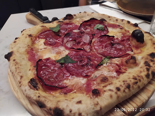 A pizza salami ventricina estava muito saborosa; a carbonara muito, muito boa (é difícil conseguir comer fora de casa uma boa carbonara, especialmente tendo pecorino e guancialle) e o linguini alla forma estava superbo. As sobremesas são do melhor: o tiramissu e o brownie com gelado de pistáchio é para saborear lentamente...