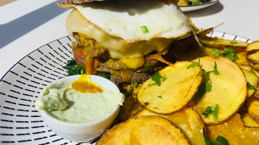 Read moreThe saitan burgers are so drenched in sauce that they have no other taste but the sauce, which is a shame. They told us fries, instead they were (very oily) chips. And the "mexican" sauce is just the asian sweet spicy sauce usually served with spring rolls. Prawns also drenched in oil and sauce, they lose their taste. I didn't taste the garlic either, even chewing on them tasted neutral... The pineapple used in the juice was not sweet. All in all this place is okay, but definitely less than expected since they advertise themselves exageratingly as "best burger in town". If this is true, then best not buy a burger in the city ;) Two stars because of the friendly staff, great location and the large selection of vegan/vegetarian dishes. Nevertheless for portugal quite expensive. And not worth its price. Maybe...