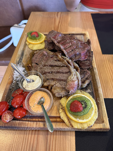 Read moreQuando vi as boas classificações fiquei com altas expectativas, quando cheguei lá e vi os preços, ainda mais. Esperámos quase uma hora pela comida (picanha Black Angus) que veio quase fria e completamente cheia de nervo, de tal maneira que alguns dos nacos eram impossíveis de mastigar e acabámos por deixar praticamente 1/3 da carne e levar para dar ao nosso cão. O arroz e feijão também não eram nada de especial e tinham pouco sabor, para além do que a taça do feijão era mais molho e salchichas do que feijão. O tomate cereja, ananás grelhado e batatas assadas estavam todos bons e muito saborosos, assim como a maionese de alho que para nós foi o único destaque da refeição. O restaurante em si está bem decorado e engraçado mas muito barulhento e apesar de ter um ar condicionado (que não devia estar a trabalhar) estava super abafado. O serviço não foi nada de especial quer em termos de rapidez quer em termos de simpatia, à exceção do empregado que veio ter connosco no final para pedir desculpa pela refeição não estar em condições e do senhor (gerente/dono?) que nos veio perguntar se a Morangoska estava boa. Pedimos apenas duas doses para três pessoas, nenhuma entrada ou extra, dividimos uma bebida por dois e só pedimos uma sobremesa e mesmo assim roçou os 20€ por pessoa… Infelizmente uma experiência a...