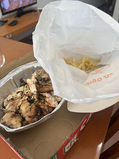 Read moreMeus caros se existe algo que eu possa dizer é: NÃO VÃO A ESTE LOCAL. Eu fiquei estupefacta quando fui buscar 2 simples frangos e ainda por cima secos (tinha um molho esquisito, que não compensava em nada) e o homem teve a enorme lata de me pedir 35€… Ah é sorte das sortes, a batata frita vinha de oferta (fará se não viesse) e ainda ofereceu uma caixinha para transportar até casa 🤡 Se procuram bom frango de churrasco, a um preço NORMAL não é aqui. Eu realmente fiquei um pouco surpreendia pelo facto do restaurante às 13h e qualquer coisa estar quase vazio, agora entendo porquê. Detalhe: o meu pai ainda queria almoçar lá no local, por sorte e digo mesmo SORTE eu e o meu marido preferimos desfrutar daqueles franguinhos banhados a ouro no sossego de casa, se não olhem lá se ia o subsídio de férias 🤣🤣🤣 A continuar assim, não dura muito 🤷♀️ Deixo aqui uma PEQUENA amostra dos franguinhos gold ✌️ Um PSzinho: Segundo o proprietário está aberto a 49 anos. Tal e qual o nosso Estado, a 50 anos a enganar...
