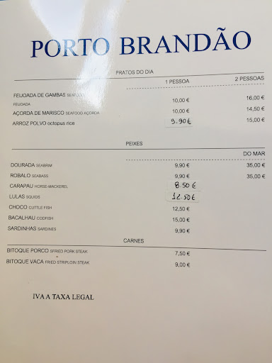 Read moreVenho a este restaurante há seguramente mais de 15 anos. Passou por várias fases, mas continuou sempre a ser o restaurante com melhor qualidade/preço do aglomerado que existe nesta praceta. Muito castiço, a presença do proprietário era uma constante no início, agora restam apenas as suas fotografias com gente conhecida, cores comidas pelo sol. Ainda assim é um restaurante acolhedor, seja verão ou inverno, com staff maioritariamente brasileiro e a sua natural hospitalidade e alegria. Já experimentei outros por aqui e não trocaria por nenhum. Adoro a genuinidade, o à vontade e bom serviço do Restaurante Porto Brandão. E dos preços para as iguarias servidas. Kudos! Não deixem esmorecer este espaço. Pontos extra para a feijoada de gambas, embora mereça um picante à altura, não um molhito homeopático... Qualquer marisco aqui é bom no Verão. Para vir só ou acompanhado. Baixei para 4* porque já precisa de uma boa remodelação e se sente a ausência do proprietário, grande conversador e uma força anímica que zelava pela boa mesa dos comensais. Para quem dá atenção a um serviço com sorriso e riso de parte a parte, no momento certo (sem o efeito secundário de chatear), que nos faça sentir acarinhados e “em casa”, este sítio é perfeito. Que é feito do...