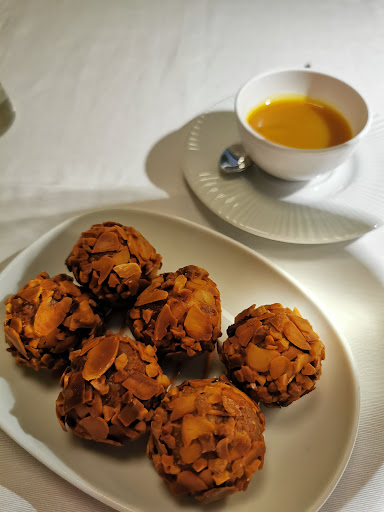 The food was okay, it wasn't bad just not what I expected. I had "Bochechas de Porco Preto" which came with 3 small potatoes and w chestnuts. Flavor was okay but nothing special or memorable. I also had a started "Croquetes de Alheira" which are different but not necessarily better than the conventional ones. I actually would have preferred a more traditional approach, but as I am open to try new things I gave these ones a try and was disappointed.