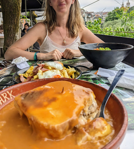The "diner / takeout" modest name and look of the menu belies the quality of food: excellent. Our salad greens were fresh and their specialty - the Francesinha - was straight out of the oven old world delicious. But true to the modest delivery-theme emphasis, the value was excellent. And quiet spacious on the riverside veranda...
