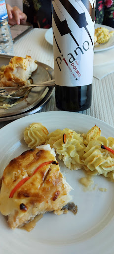 Read moreRestaurante agradável. O vinho, um Piano, estava agradável. Pedimos, pão, queijo, presunto. Seguidamente uns rissois, uns bolinhos de bacalhau e ainda uns camarões. Nenhuma das entradas surpreendeu. Pedimos um bacalhau gratinado, muito bom e bem confeccionado. Meia dose chega perfeitamente para duas pessoas. Preço...