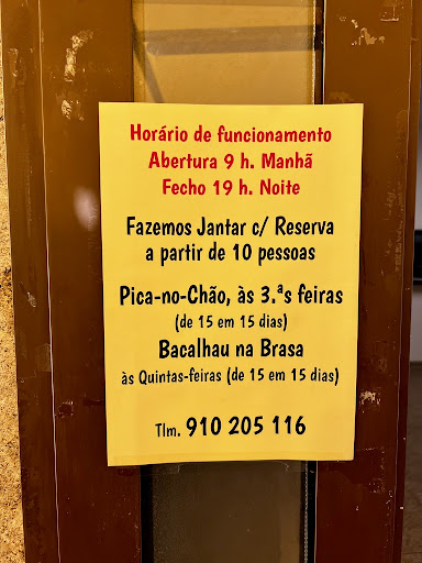 Read moreFomos hoje pela primeira vez à taberna do Amaro. Só tinham para almoço febras e filetes. As febras estavam duríssimas e os filetes eram de peixe gato de pouca qualidade. Para terminar o mau serviço a casa de banho trasandava a naftalina....