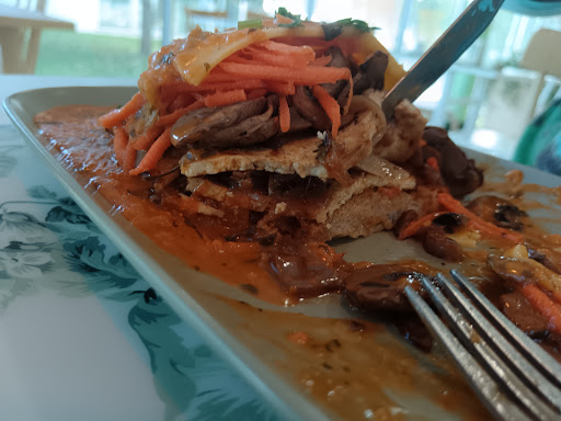 O menu é variado e tem opções vegan e vegetarianas. Os pratos são bem servidos, muito bem temperados e preparados com ingredientes frescos. Comemos salada de tofu e hambúrguer de quinoa e beterraba e estava tudo impecável!