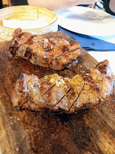 Seguimos a sugestão do dia e a carne de cachena (sazonal) juntamente com um vinhão (servido em taça, por preferência pessoal) estava divinal!! Perfeitamente grelhada ao ponto e mal passada e mesmo depois de ter sido grelhada por mais tempo (a pedido dos nossos convidados à mesa), continuava muito tenrinha e saborosa.