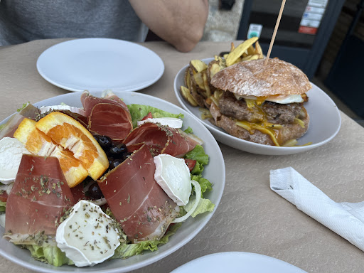 A friendly family run Taberna that turned out to serve splendid local food at reasonable prices. Take one of the beautiful circular walks in the mountains around the town and then go there for a hearty lunch. My husband ordered the plate of local sausage and ham and when it arrived we were somewhat taken aback by the generosity of the offering, it could have fed four. I had a burger made from delicious local beef with goats cheese and onions, and really excellent potatoes with mountain herbs. We had a fabulous meal outside, in the last of the warm winter sunshine, chatting to the owner (who had lived for 40 years in the States before returning home) and drinking local wine. In the end, the plate of sausage defeated us and we had to ask for a doggy bag. We were fed like kings.
