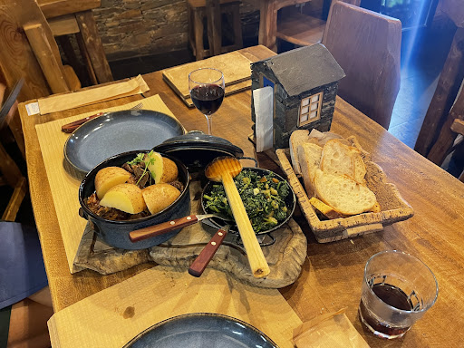 En la Plaza principal del pueblo y a pocos metros de su iglesia se encuentra este pequeño restaurante en casa de piedra tradicional de la zona, con interiores de madera. que recuerdan a un albergue o refugio de madera. Dispone de mesas en el exterior y poco más de 6 0 7 mesas en el interior por lo que no es idónea para grupos grandes. En época estival suele estar muy concurrida por la cantidad de turistas que visitamos los preciosos valles de Arganil.