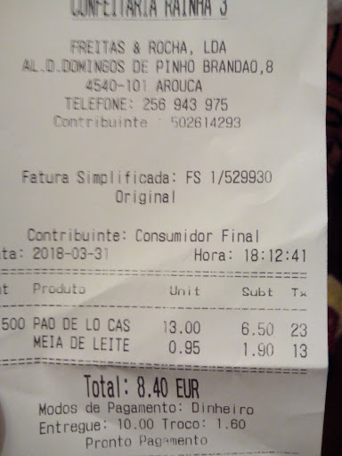 Read moreO meu nome é António Brandão e frequento este estabelecimento à mais de 20 anos com a minha família e sempre fui muito bem atendido e os produtos são de facto de qualidade. Nos últimos tempos tenho ido durante a tarde ao Rainha com a minha esposa e netos e fiquei surpreendido com a arrogância de uma funcionária nova que anda nas mesas que não tem perfil para aquilo. Fala com as pessoas como se fossem irmãos dela e entrega as coisas quase a atirar os pratos na mesa, nota-se também que não é simpática com as colegas. Não sou de fazer queixas mas como cliente fiel fiquei desagradavelmente surpreendido com esta “nova aquisição”. Em relação ao outros, tudo muito simpático, o senhor que anda nas mesas é sempre muito atento. Pelo que entendi chama-se Daniela, percebi uma pequena discussão entre as funcionárias e a pessoa em causa. Dá mau aspeto à casa. António...