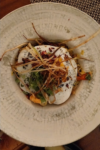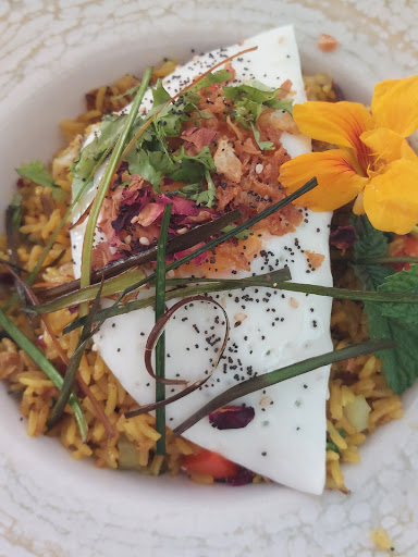 We last had lunch elswhere in Arronches but it was planned we would stop here the next time...and so we did, with a visiting relative. The reviews were too good not to try once at least despite the very unassuming location and outside look of the place. Yes, the restaurant appears to be integrated in the indoor swimming pool building and the small terrace certainly hasn't magnetic charms. But don't let yourself be put off. The restaurant has indeed a plunging view over the indoor pool. The dining area is relatively spacious with a manageable number of tables allowing for a relaxed ambiance and for the service to be perfectly attentive. The owner is a charming lady who was very welcoming and speaks good English, a rare occurrence in Alentejo. The menu is designed to fit on a black board, giving you a perfectly limited and reasonable choice. Who needs 10 starters, 20 main dishes and so on? All this is designed to allow for freshly prepared dishes and an obvious importance on quality. We kept the couvert of delicious bread, olives and butter. Now the big surprise was to see Nasi Goreng, an Indonesian rice dish (for those who don't know) on the menu! We love Asian food and there was no thinking twice. Our guest chose the piece of grilled beef. We took a bottle of the house red wine and a beer. Then the dish arrived, beautifully appetizing and so enticingly presented. Matching the visual quality was the taste too. Some of us could not give the dessert a miss, so we all decided on 1 pineapple carpaccio with mandarin sorbet, the chocolate fondant with vanilla ice-cream and the red fruit cheese-cake. Sadly I found my pineapple not sufficiently ripe and juicy. The sorbet was however right up my street. The place appeared rather popular with local/regional people which is a great and encouraging sign. Most tables were occupied by the time we were ready to leave. We paid our bill which came to lust under 70 euros for 3, congratulated the owner and 2 other staff. We were told that the Nasi Goreng is normally always on the menu along with other rotating Asian dishes. This place is a winner, the quality price ratio is pretty good for the location, we are certainly ready to try other dishes which looked fabulously tasty. Best is to check on their Instagram page for close-up pictures of the dishes. Thank you for the agreeable experience, we shall return and have already highly recommended...
