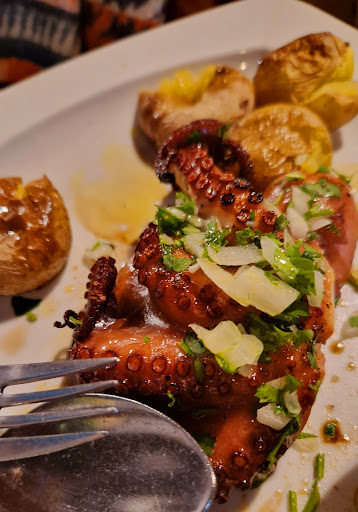 Read moreBom nem sei por onde começar se pelos acessos,mas também compreendo pois este sítio deve estar mesmo escondido para não haver muitos enganados como me senti ontem,este espaço foi recomendado e viemos exprimentar esta desilusão, digo desilusão pois é a palavra que caracteriza a gastronomia oferecida, pois a começar na sangria bastante artificial mas ainda assim o menos mau para o que viria a seguir, pois um polvo de à lagareiro que além de deslavado vinha cru e com uma migas com uns supostos coentros que não se viam e muito menos se sentiam, um bacalhau com natas péssimo aspeto e conseguiu depois ser pior no sabor, e por fim umas tiras de porco preto que de preto só devia ser mesmo de algumas estarem queimadas, por fim um café miserável a juntar a um roubo na conta pois quase 60 euros por isto é roubo,valeu a ginga no fim de oferta diluída no roubo da conta, não recomendo...