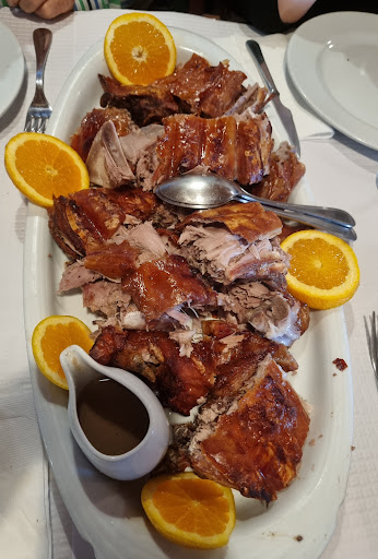 Nova visita ao Restaurante Valverde no sítio da Louriceira de Baixo, Concelho da Arruda dos Vinhos. O Valverde é talvez um dos melhores Restaurantes da zona Oeste e é bastante conhecido pelo Cabrito Estonado, que foi a minha escolha para hoje. O Cabrito Estonado consiste em escaldar o cabrito e logo de seguida raspar a pele até ficar limpa e lisa, de seguida marina-se e leva-se a assar num forno bem quente até a pele ficar bem Tostada e a Carne suculenta e muito saborosa. O fantástico Cabrito é acompanhado por batata Pala Pala, um arroz de miúdos divinal e feito com arroz basmati e também uma salada. Este prato é confeccionado com reserva antecipada, no mínimo para 4 pessoas e não sendo barato é um prato de Excelência. Fantástico! Adocei esta ótima refeição com um Pudim de Menta com Topping de Chocolate, tambem bastante saboroso. As entradas foram várias, desde o Pão, Azeitonas, Presunto, Torresmos e Bolinhas de Carne e acompanhamos a refeição com vinho da casa Tinto, caseiro e bastante bom. Como é lógico é uma refeição que não sai barata mas os 35€ por pessoa que se pagou foram sem dúvida muito bem empregues....