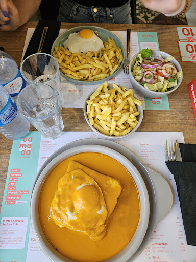 Assim que chegamos ao local fomos logo direcionados para uma mesa, o menu está logo visível assim que nos sentamos visto ser diretamente no individual. Um ponto a favor é que tendo em conta que o Camada é uma casa conhecida pelas francecinhas gostei do fator de ter pratos fora desse âmbito para quem quiser pedir outra coisa
