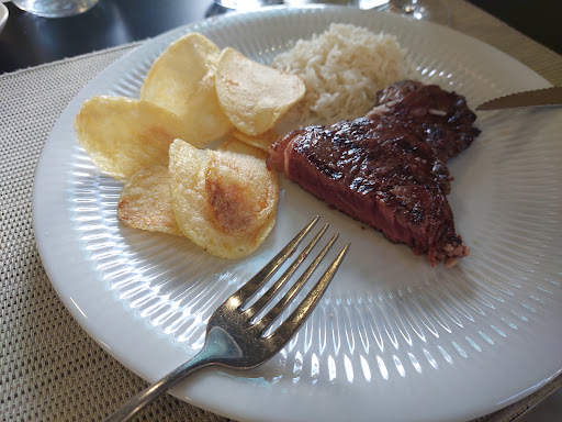 Declined the starter meats and bread which is offered to diners and went straight for the main course from the wide ranging choice of meals in the menu - half a grilled chicken served with boiled rice and chips and a green salad (had to check whether it was served with any side dishes because the menu wasn't clear). The half chicken arrived in 3-4 pieces from memory, was cooked well. For those who like wine with their meal, the restaurant carries a selection of wines with quite a few visible on display.