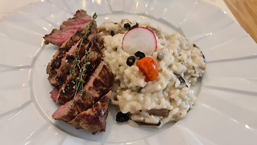 Read moreIt was a good experience, but the food needs to improve. We wanted to eat outside but had to wait more than 30 minutes for a table. The waiter was nice to us, and the atmosphere was nice too. I ordered medium veal with mushroom risotto, but the veal was almost well done and too salty. The veal had additional salt on top, which, for me, is pointless (if I wanted, I would ask for it). The tiramisu was ok, but for 5€, I expected a nice portion with more...