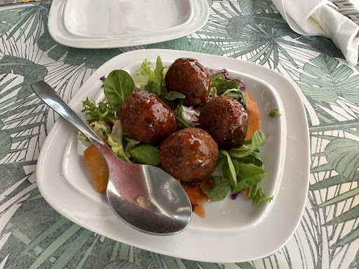 The culinary journey at Mugo is spearheaded by Sara, Leonel's wife and an exceptional chef, whose skills in vegan cuisine are nothing short of amazing. We started our meal with homemade shiitake "alheira" croquettes, which were perfectly crispy on the outside while deliciously flavorful inside, complemented by a crunchy salad and a sweet chili sauce that added a nice kick of spice and aroma.