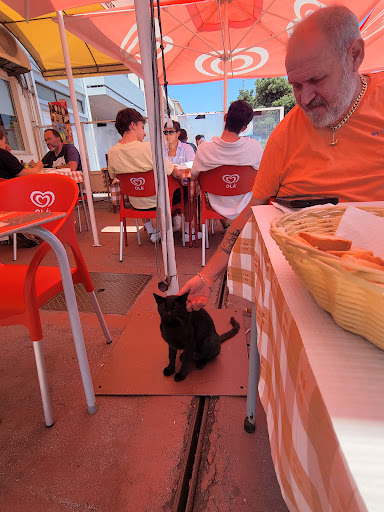 We went on a weedsy for lunch ch and there were only 2 servers for inside and outside. Lots of people left but we had nowhere to go so we stayed because it was a beautiful day anyway. About 40 mins later we got drinks and put in our order. The food was amazing. Best sardines I've had EVER. A sweet kitty made out like a bandit . The server apologized profusely and wS...
