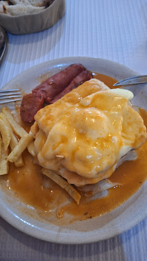 Read moreComimos francesinha que nunca la habíamos probado...estaba riquisimaaaaa... una amiga mía no le gusto por sus gustos personales y el dueño al ver q no.comio enseguida le empezó a ofrecer otras cosas para q cenara y le saco finalmente un postre que estaba de muerte la tarta de queso! Además mi hija quería un helado y se molestó en ir a buscarlo a la pastelería de al lado con la niña....super amable! Sin duda volveremos, restaurante muy bueno y barato con parrilla de...
