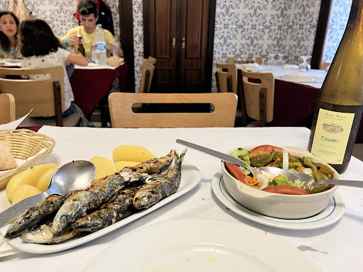 Read moreIt is a typical portuguese tavern with local food. I was interested in having the grilled sardines as I read the fish is fresh and good. Was not disappointed at all. The photo I attach is for half a portion of the grilled sardines which comes with salad and veggies. As a woman- I eat a lot and this was plenty for me to be full, but not stuffed to the brim. The plate looks smaller on the photo - it is one of those big plates so do not be fooled by my photo. I had melon for dessert which was also good- came from the fridge so was refreshing in this heat. I do recommend it- it is a family run business. The man seems a bit grumpy but do not mind him- I reckon it has not been easy for them in this pandmic. Definately if you go to Aveiro- pay them a visit. Prices...