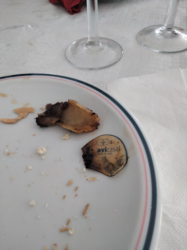 Chegámos e demorou bastante tempo até nos trazerem dois pratos com pão e uma azeitonas. Bebidas pedidas e mais uns bons minutos de espera. Nunca tivemos acesso a um menu. A empregada de mesa voltou e disse que a única comida que tinha a sair rápido era a grelhada mista. Como não queríamos esperar muito para comer, pois já tinhamos fome, pedimos grelhada mista para 8 pessoas. Uns bons 25 ou mais minutos depois, lá chegou a nossa grelhada, que claramente foi requentada, pois nada tinha sido feito ao momento.