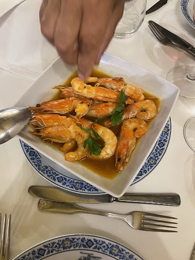 This place makes me feel like I’m in Mayfair with the amazing level of service. Food was cooked to perfection! The omelette was to die for! Honestly. Chips hand cut, and prawns some of the best I’ve ever had. The waiter Carlos was amazing. First time I didn’t need to explain what an Americano was since I’ve been in Portugal too! Lovely jazz music playing all evening, but we could still hear our food...