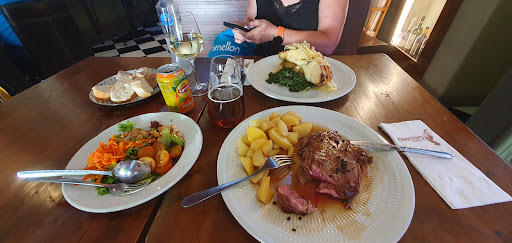 Read moreOur experience here was odd. We walked in with our backpacks so I supposed they just assumed we wanted the pilgrim’s menu and as soon as we sat down they brought us soup. This is without any kind of introduction or greeting. We told them we would like the regular menu and I think it just threw things off for the rest of the meal. I ordered the garlic prawns (good) and a ribeye steak (bad) the steak was clearly a sirloin and very tough. Overall I wouldn’t say this is a terrible place as the atmosphere is good and I’m glad they provide a pilgrim meal to those on the Camino but I felt like we were treated like second class. Desserts were nicely presented but also...