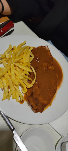 Read moreJá lá tinha ido só com o meu namorado e gostei. Mas em grupo? Que desilusão. As entradas eram escassas, quase que não chegava um bolinho de bacalhau para cada pessoa (éramos 18), o mesmo aconteceu com o jantar em si. Era bifes, super pequeninos, servidos em pratos, mas parecia que se destinavam a pessoas em dieta. A bebida era à descrição, mas não valia nada. O vinho verde era rasca, o maduro ainda escapava, mas a sangria com cheiro a detergente partia tudo. As sobremesas estavam aceitáveis. O bom de tudo: o sabor da comida O mau: quantidade O péssimo: vinho, preço
