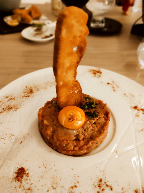Dia de estreia no restaurante “Clube de Vela Bar”, localizado à beira Tejo, na Avenida da Praia (Av. Bento Gonçalves), no Barreiro. Um dia em que Outono se quis mostrar nas plenitudes das suas valências, com chuva e muito vento, a exclamar por um repasto gastronómico de reconforto. O restaurante situa-se no andar superior do Clube de Vela do Barreiro, com uma ampla vista para o rio Tejo, para Lisboa, para Almada, para o Montijo e permitindo ver as duas pontes do Tejo situadas mais a jusante. Em dias mais amenos permite desfrutar do rooftop situado o terraço do restaurante. Sala acolhedora com mesas bem espaçosas e cadeiras confortáveis, uma decoração cuidada e personalizada. Atendimento simpático por parte do satff, pese embora, uma certa descoordenação por parte de uma das colaboradoras, que rapidamente se desfaz com o degustar das iguarias servidas. Para 5 adultos e 2 crianças em idade pré-escolar, para além do couvert composto por pão, manteigas e paté, optamos por lombos de robalo com açorda de ovas, lascada de bacalhau, magret de pato com molho de laranja e tomilho, bife da vazia com molho à portuguesa e duas doses lombinho de porco corado com presunto. Para regar o repasto, 2 “doses” de vinho branco da região de Palmela, uma sidra de maçã, uma água e coca-cola. Veio ainda o pudim de ovos com crosta crocante de caramelo salgado para adoçar as papilas gustativas dos mais gulosos, e cafés para os adultos…. Ficando a fatura em cerca de 13 dezenas de euros. O veredicto a respeito a apresentação e degustação dos pratos foi por unanimidade muito positivo, com um pequeno reparo no bife da vazia que foi pedido no ponto e veio ligeiramente acima do ponto. Mas todos os pratos estavam confecionados de forma exemplar e com ingredientes de qualidade. De realçar a estrema atenção e disponibilidade por parte do chefe de cozinha e responsável pelo restaurante, para com um dos comensais que tem uma alergia a alimentar especifica. Este tipo de atitude demonstra cuidado e profissionalismo, o que é um excelente indicador e certamente cria uma relação de confiança com os clientes. O único aspeto menos positivo, se assim se pode dizer, é a sala quando está cheia, como foi o caso, torna-se um pouco barulhenta. Talvez pelas mesas serem bastante espaçosas e permitirem que as pessoas fiquem mais afastadas uma das outras, tenham de falar mais alto, o que acaba por gerar um efeito contagiante e todos tendem em aumentar o volume da conversa. Em suma, um restaurante com um atendimento muito simpático, uma decoração cuidada e com uma excelente vista, pratos com muito boa apresentação e confecionados soberbamente. Fica a vontade de experimentar as restantes propostas do chefe de cozinha… A repetir seguramente. Uma nota final, convém marcar mesa com...