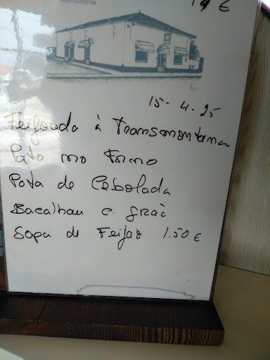 Read moreUma passagem de última hora, já tardia, portanto já não havia toda a escolha dos pratos do dia. Escolhemos o ensopado de borrego com batatas fritas e o bacalhau com todos (cozido com ovo, grão e batata que pedi para substituir por legumes)! Tudo muito saboroso, bem servido. A batata veio substituída por uma travessa generosa de feijão verde salteado. O borrego acompanhado com arroz, batata frita e salada. Para o bacalhau veio ainda um preparado de cebola picada com salsa! Do menu fazia parte também as entradas (pão e azeitonas), bebida (escolhemos tinto e uma água) e café! Cada menu por 10€ que deixa qualquer pessoa satisfeita em qualidade e quantidade 😁 a rapidez também foi exemplar. O sítio um pouco barulhento e pouco acolhedor pelas suas dimensões (tipo restaurante de paragem/viajante). Mas...