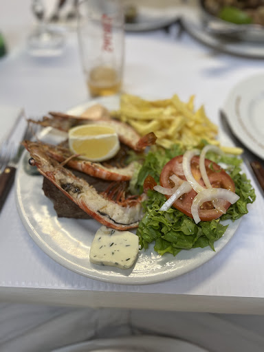 No que diz respeito à comida, optei pelo bife da vazia com camarão tigre, que é um dos pratos principais da casa. Não desiludiu em nada! O prato estava delicioso e bem servido. A meia dose é mais do que suficiente para uma pessoa, o que é uma vantagem. Também provei as amêijoas, que estavam excelentes.