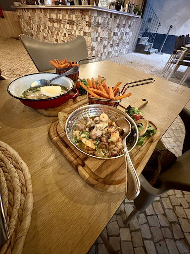 Great. The menu has variety (albeit a little big) with lots of original and some classics choices. The starters were very good and the "bolinhas de alheira" (the ones I had) were delicious. I had gratin Cod fish .. a generous portion. I was about to choose a dessert (good choices as well) but I had to cancel because of all the mosquito flying around (a problem alien to the restaurant itself). The place is very modern and it has a cozy feel to it with inside and outside seating. Prices can be moderate to high, but with what's presented I think it's fair. Lots of potential... And...
