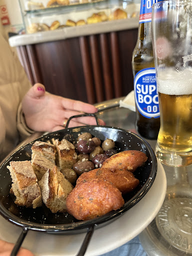 Today, A Brasileira is an excellent stop for those eager to sample traditional Portuguese flavors. One standout is the tíbia, a local conventual sweet that resembles a profiterole, filled with rich egg yolk cream — a delicacy that speaks directly to the region’s pastry heritage. For something savory, the pastel de bacalhau with broa (cornbread) and olives, accompanied by a cold fino (draft beer), makes for a satisfying and authentic snack.