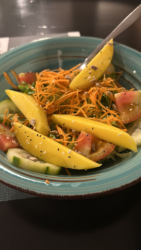 Overpriced and boring - stick to the wine if you must. Portions are small and the food simply isn’t anything you wouldn’t be able to make yourself. The salad clearly had been sitting for a while and was easily the most boring version of a mango salad I could imagine - cucumber, tomato, leafy greens, 4 slices of mango, olive oil. Risotto was soupy instead of creamy, cannot confirm nor deny that there was truffle in it as indicated on the menu. Furthermore, according to the menu the risotto is vegan. The one I was served first had cheese in it. Waitress started arguing with me that I should have told her - still not sure how I was supposed to know that the vegan risotto would not be vegan unless I told them so. They remade the risotto without cheese but then it was scalding hot like it had been heated up in a microwave.