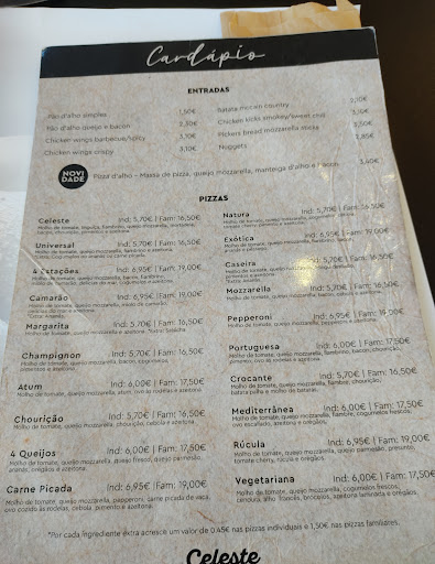 Read morePor recomendação de uma amiga fomos almoçar a celeste de Braga, a primeira colaboradora com quem nos cruzamos disse-nos que era para pedir primeiro e depois sentar, a segunda já nos disse que teríamos de sentar primeiro e alguém iria á mesa. vimos o menu do dia (com fotografias com um excelente aspeto) e foram pedidos 3 bacalhaus com natas e um arroz de pato e bebidas. As bebidas vinham quentes e a comida nada parecida com o cartaz! O bacalhau com natas parecia uma papa, até as comidas pré feitas dos hipermercados tem melhor aspeto e sabor, o arroz de pato sem tempero. No dia seguinte decidimos dar uma oportunidade as pizzas. Depois de 10min sentadas veio um colaborador fazer o pedido, mais uma vez bebidas quentes… passada meia hora vieram as pizzas, acontece que não nos trouxeram talheres (há quem coma a pizza a mão e há quem coma com talheres), passou uma colaboradora nas escadas e chamamos ao qual responde “só um minutinho” até que passaram mais 10 a 15min para que o colaborador aparecesse na sala e o conseguíssemos chamar para pedir os talheres. Péssimo atendimento, péssima organização, comida péssima, só consigo mesmo elogiar as pizzas, essas sim são...