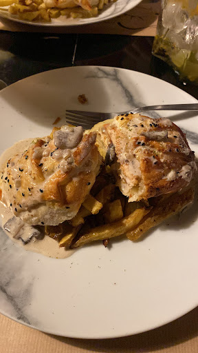 3 - prato principal , como podem ver numa das fotos, era um bife Wellington. Perguntei se me recomendavam aquele prato, explicando que era um prato que gostava imenso e que já havia provado noutros sítios. E sim, disseram-me que era muito bom…e recebo aquelas merendas mistas do pingo doce com um bife no meio - a carne em nada é semelhante a um verdadeiro bife Wellington - nem qualidade, nem textura, e nem tão pouco quantidade e estamos a falar que o prato custou 24€. Comparando com um restaurante da zona que cobra 40€ por um excelente Wellington, mas que dá para duas pessoas, só tenho a dizer isto: façam as contas. O outro prato foi um francesinha que até tinha um molho interessante, mas o bife deixou a desejar - mal cozinhado e servido com gordura e nervos - que demonstra falta de preparação na confecção.