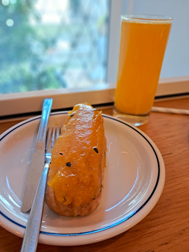 This is the perfect spot for a delicious breakfast, coffee, and dessert. We had the "lanche" with a ham and cheese sandwich (SO buttery and delicious on the rustic bread) and the "bom dia" with a ham and cheese brioche croissant - both paired with perfectly made meia de leites (flat whites). For dessert, we couldn’t resist trying the éclairs — one with papaya and mango topping filled with chantilly, and the other a "duchesse de morangos" with chantilly and fresh strawberries. Both were...