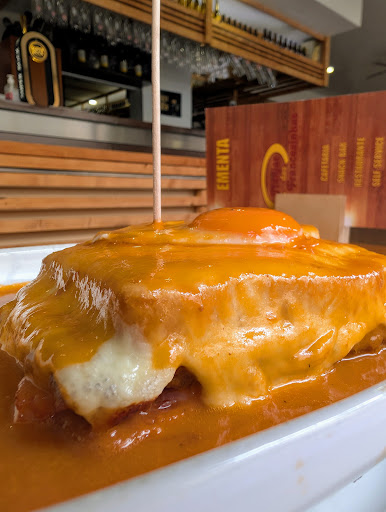 No que toca à Francesinha, é a minha referência! Até à data não encontrei melhor. O molho é suculento, pode ser servido com ou sem picante. Pessoalmente prefiro-a picante. As batatas fritas não são congeladas, é tudo feito "maison" e servido em prato à parte. Há a possibilidade de pedir mais molho e existe uma grande variedade de cervejas nacionais e internacionais. Se posso sugerir uma internacional, então fica a sugestão das "3 Monts" cerveja francesa de 8%... Vale a pena! Embora o tempo de espera seja um bocado demorado (temos de ter em conta que não é um McDon....) mas vale a pena a espera. O Atendimento é de uma simpatia e profissionalismo de louvar.