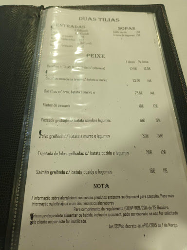 O Restaurante Duas Tílias, situado na rua do Agrelo, n. 13 , freguesia de Nogueira, Braga é um restaurante que tem refeições económicas e para levar para casa. Tem pessoal eficiente e muito atencioso e rápido a atender os clientes. A cozinha é tradicional, tem o bife á duas Tílias, arroz de sarrabulho e rojões, cozido á portuguesa, bacalhau assado na brasa etc.Tem bons pratos tanto de carne como de peixe. Tem um óptimo serviço, bom ambiente e espaço e boa relação qualidade/ preço. É um espaço óptimo para grupos ou para fazer uma refeição rápida. Fica perto do Hospital...