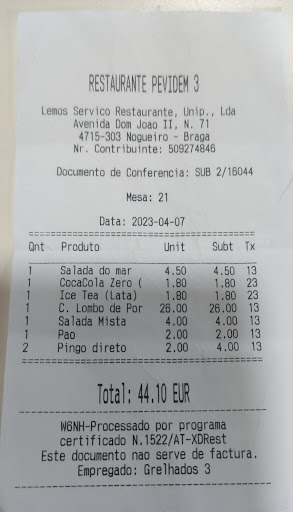 Read moreDou preferência aos restaurantes da minha zona habitacional, no entanto as desilusões são enormes, neste caso, será a quarta vez, por isso, o meu desabafo. Uma primeira, tudo normal, caro mas correto, numa segunda, ficamos insatisfeitos tanto pelo serviço que a qualidade, uns tempos passaram, voltamos, pedimos um arroz de tamboril, surpresa, arroz mal cozido, mariscos e peixe totalmente frios na calda do arroz, quer dizer, não foram totalmente descongelados, a reclamação de nada serviu, parecia que a funcionária se estava marimbando. Hoje, e esta será a última, fui encomendar 2 francesinhas, desolação total, molho Salgado e doce, o Ketchup era evidente, uma carrada de queijo tipo pastilha elastica, uma espécie de bife indeterminado, uma camada de Fiambre, e umas rodelas que parecia ser chouriço. Apesar de ser caro a qualidade deixa cada vez mais a desejar. Na minha opinião, é restaurante a não frequentar,...