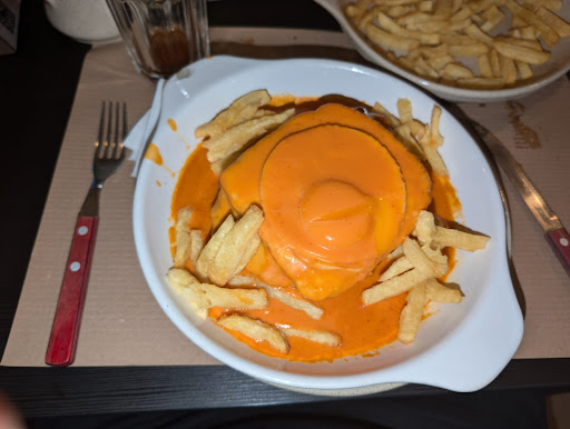 Pitéu restaurante é um restaurante em Braga conhecido pela sua francesinha e churrasco. Fomos a um dia de semana a noite e fizemos marcação para duas pessoas, para grupos pequenos penso que reserva não é essencial mas para grupos maiores é melhor. A decoração dos restaurante é no meu ver de pouco gosto e pouco pensada, mas nada afilitivo. Pedimos os ovos rotos que é servido com molho francesinha o que penso ser uma excelente ideia a isso dou 5 estrelas. Pedimos duas francesinhas ice tea de limão e Coca-Cola de pressão (que realmente pouco gaz, mas ao nosso gosto). O molho da francesinha é bom, como o tradicional molho de Braga a tender mais para o doce que o picante. O mais desapontante na francesinha e o que retirou uma das estrelas, á experiência foi o bife, que não era nem de grande qualidade nem muito bem confeccionado. O serviço foi ok. Poderia recomendar a algumas pessoas, mas para mim pessoalmente não será...