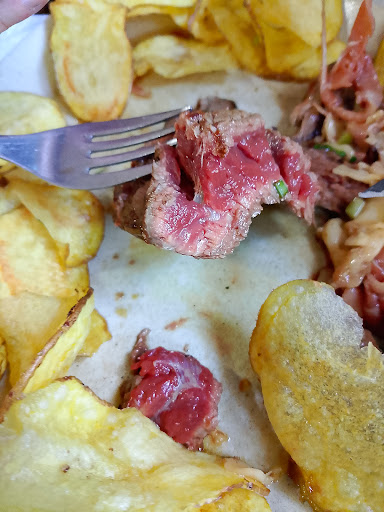 Read morePeor imposible mala experiencia 2 horas y me fui sin comer la carne mia quemada fría y seca como paja . El bife a la portuguesa crudo y frío por dentro . Palabras textuales de un niño de 6 años , Tienen miedo a cortarse por eso tardan tanto a traer la ensalada . El niño después de más de 1 hora esperando su sopa y ensalada aburrido y cabreado ya no quiso comer . Mi carne seca quemada y fría la devolví y me fui sin comer y la mujer solo puso comer las puntas del bife xk estaba literalmente crudo y frío por dentro . La dueña muy amablemente me pedio perdón varias veces y se ofreció a prepararme otra comida incluso a hacerme un bocadillo para el viaje cosa k por supuesto no quise . Después de 2 horas y sin comer solo quería salir de allí pagué lo poco k se comió y la bebida aunque fue poco lastima de dinero desperdiciado . No dudo k se coma bien allí pero no fue mi experiencia ni lo puedo recomendar como me lo han recomendado a mí . Lo siento en el alma y más por un niño de 6 años k se quedó sin comer una simple ensalada y una sopa k...